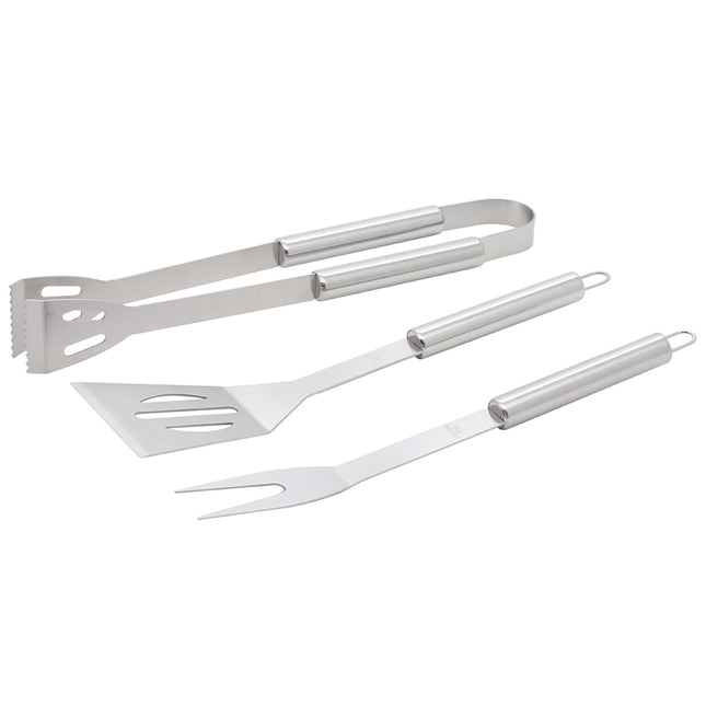 Imperdibile set utensili barbecue con i quali potrete cucinare sul vostro barbecue in modo corretto e con gli strumenti giusti.Il set è formato da 3 utensili, realizzati in acciaio con manico in legno, tutti di alta qualità.Grazie al design unico ed indimenticabile, il set da 3 pezzi per barbecue non solo è utile e funzionale, ma anche bellissimo da tenere in cucina.Le linee pulite permettono una pulizia facilitata del prodotto ed offre inoltre la possiblità di lavarli in lavastoviglie; pulire non è mai stato così facile.SPECIFICHE PRODOTTO:Marca: BAKAJINumero attrezzi: 31 Pinza per barbecue1 spatola1 forchettoneImpugnatura ergonomicaColore impugnatura: cromataMateriale: acciaio inoxCONTENUTO DELLA CONFEZIONE:1 x Set 3 Utensili Barbecue Forchettone Pinza Spatola Acciaio Inossidabile Cromato