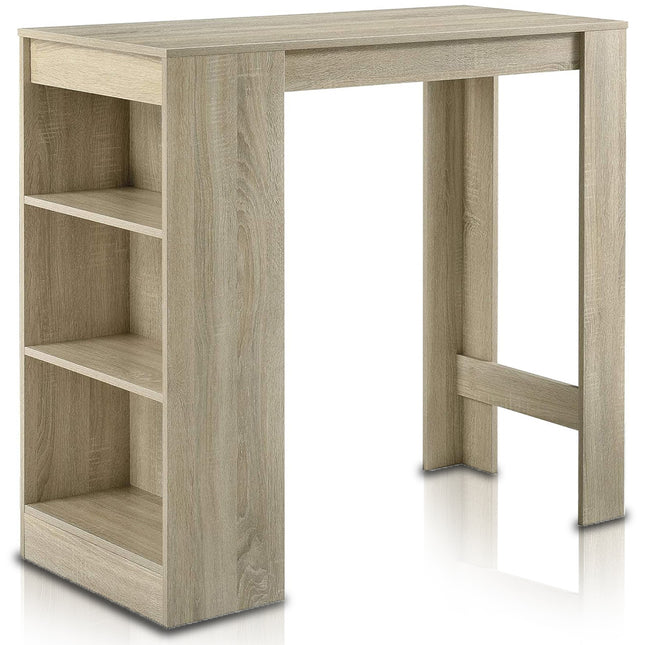 Questo elegante tavolo da bar sarà sicuramente l'aggiunta perfetta alla tua casa, grazie alle sue 3 mensole integrate e al design elegante.Il tavolo da bar ideale per la tua casa con il suo design elegante crea un'atmosfera favolosa, un luogo contemporaneo in cui mangiare con una funzione aggiuntiva, potendo sfruttare anche lo spazio di archiviazione laterale.Usalo per conservare libri di cucina, oggetti decorativi o altri elementi essenziali per la cucina e la sala da pranzo.Questo mobile moderno è realizzato in legno lavorato e si abbinerà sicuramente alla maggior parte degli stili di interni.SPECIFICHE PRODOTTO:Materiale: MDF e MelamminaDimensione: 110 x 50 x 103 cmSuperficie facile da pulireFacile e veloce da montareElegante e senza tempo nella tua casaCostruzione robustaNumero scomparti: 3Colore: querciaCONTENUTO DELLA CONFEZIONE:1 x Consolle Tavolo Alto da Bar 3 Ripiani Tavolino da Pranzo Quercia Penisola Cucina