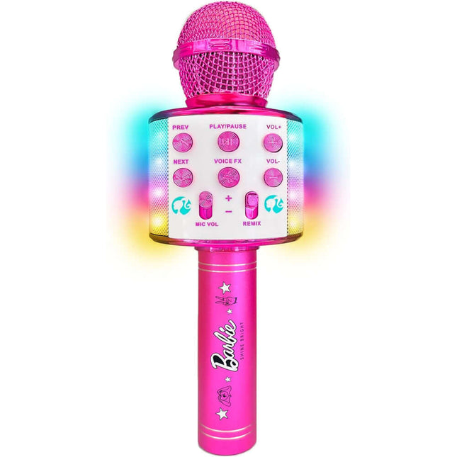 Diventa una vera star e divertiti a cantare sulle tue canzoni preferite con questo fantastico microfono con attacco MP3!Questo fantastico microfono è fornito di pratico attacco MP3 con cavo Aux (incluso) dove potrai collegare lettori mp3 e smartphone per divertirti a cantare sulle tue canzoni preferite! Inoltre grazie al pratico supporto potrai appoggiare direttamente il tuo smartphone sul microfono e divertirti a vedere i tuoi video musicali mentre canti o giocare al karaoke seguendo il testo della canzone!Dal pannello di controllo del microfono è possibile regolare il volume o impostare fantastici effetti sonori come applausi e canzoni preimpostate, inoltre glie effetti di luce renderanno l'esperienza di gioco davvero unica!Il microfono è poggiato su un asta regolabile in altezza fino ad un massimo di 77 cm che si adatta perfettamente all'altezza di qualsiasi bambino.Sentiti una vera rockstar con questo magnifico microfono! SPECIFICHE PRODOTTO:Dimensioni: 77 x 45 x 45 cmMateriale: PlasticaColore: Rosa e ViolaNecessita di Montaggio: SiNecessita di Batterie: SiBatterie incluse: NoAttacco MP3 Aux per collegare lo smartphoneCon supporto per smartphonePannello con effetti sonori e canzoni preimpostateGiochi di luce da vera rockstarAsta regolabile in altezzaCONTENUTO DELLA CONFEZIONE:1 x Microfono Karaoke Giocattolo Bambini con Attacco MP3 Smartphone Asta Regolabile