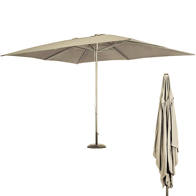 Fantastico e Nuovo Ombrellone da Giardino a Palo Laterale retrattile con parasole inclinabile, solida struttura portante in alluminio, telo di Copertura in Poliestere e PVC da 250 gr/mq, Antipioggia. Resistente alle alte e basse temperature, che garantisce un'ottima protezione dai raggi UV.Caratteristica principale del nuovo Ombrellone con base a croce è la resistente struttura a 8 stecche in alluminio che ne garantisce una ottima resistenza nel tempo, e una perfetta stabilità anche durante le giornate più ventilate.Il parasole è dotato di meccanismo di inclinazione che vi permetterà di inclinare l'ombrello nella posizione che desiderate, soddisfacendo qualsiasi tipo di esigenza.Il palo laterale in metallo da 93 x 58 mm non arrugginisce, ed è coperto da una speciale verniciatura a polvere di colore Marrone inoltre è fornito di rotazione a 360 gradi.Apertura manuale a manovella, Grande stabilità e robustezza, ferramenta in metallo antiruggineDal design raffinato, è ideale in giardini, terrazze e piscine, un complemento d'arredo indispensabile per godersi l'estate all'aperto.SPECIFICHE PRODOTTO:Daimetro dell'ombrellone: 3x4 metriAltezza dell'ombrellone: 2,70 metriDimensioni totali dell'ombrellone ( aperto ): 300 x 400 x 270 cmPalo laterale in alluminio diametro 93 x 58 mm con speciale verniciatura a polvereTelo in Poliestere e PVC 250 gr/mq Antistrappo, ( Waterproof ) Impermeabile, resistente agli agenti atmosferici , grande robustezza8 Stecche in alluminio diametro 17 x 25 mm per una maggiore stabilità , anche durante le giornate pi๠ventoseColore del telo dell'ombrellone: EcruColore struttura: MarroneCon AirVent ( Sistema di ventilazione ) antiribaltamentoSistema di inclinazione parasoleRotazione a 360 gradiBase di sostegno a croce fissabile a terra o con posa di piastre quadrate ( pistrelle non incluse nella confezione )Apertura e Chiusura a manovella.CONTENUTO DELLA CONFEZIONE:1 x Ombrellone Giardino Decentrato Senso 3x4 Reclinabile Ecru Palo Metallo Gazebo