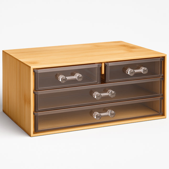 Organizer Porta Trucco in Bambù con 4 Cassetti Trasparenti Organizzatore Multiuso
