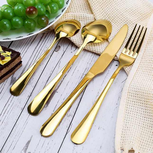Elegante design dorato perfetto per le festività natalizie: Questo set di posate da 24 pezzi, dal colore dorato brillante, aggiunge un tocco di lusso alla tua tavola natalizia. Il design raffinato si abbina perfettamente all’atmosfera calda e festosa del Natale, rendendo ogni pasto un'esperienza speciale e memorabile. Il colore dorato richiama i toni preziosi e scintillanti tipici delle decorazioni natalizie.Set completo per cene di famiglia o eventi speciali: Composto da 6 coltelli, 6 forchette, 6 cucchiai e 6 cucchiaini, il set da 24 pezzi è ideale per cene di Natale con amici e familiari. Ogni pezzo è progettato per offrire comfort e funzionalità, combinando praticità con eleganza. Il design dorato aggiunge un senso di festa e di celebrazione alla tavola, rendendo il servizio perfetto per occasioni importanti.Materiali resistenti e facili da pulire: Realizzate in acciaio inossidabile con una finitura dorata di alta qualità, queste posate non solo offrono resistenza e durata nel tempo, ma sono anche facili da pulire, mantenendo la loro lucentezza e bellezza nel corso degli anni. Perfette per le cene natalizie, queste posate resistono all’usura tipica degli eventi festivi e possono essere riutilizzate per molti Natali a venire.SPECIFICHE PRODOTTO:Colore: oroNumero posate: 24Materiale: acciaioCONTENUTO DELLA CONFEZIONE:1 x Servizio 24 Posate Oro Lucido per Natale Decorazioni da Tavola Cucina Natalizie