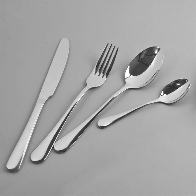 KIT COMPLETO PER USO QUOTIDIANO: Include 4 forchette, 4 cucchiai, 4 coltelli e 4 cucchiaini in acciaio con manico grigio, con supporto in plastica ABS da 11x11x25 cm.