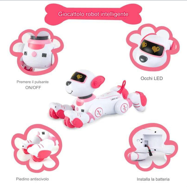 Sei pronto a divertirti e prenderti cura di questo fantastico cane robot interattivo!Questo incredibile cane radiocomandato è fornito di tantissime funzionalità interattive che potrai gestire con i tasti del radiocomando!Tramite i comandi potrai ordinare al cane di andare avanti, fare una verticale, fare le flessioni, di sedersi, Accovacciarsi, Abbaiare, di fare la guardia e tanto altro ancora! Inoltre può esprimere emozioni e interagisce con te quando lo accarezzi, Inoltre è capace di ballare su ben 3 basi musicali e potrai programmarlo per fargli eseguire più azioni in successione, insomma il meglio tra i cani robot!Questo cane robot radiocomandato è alimentato da una potentissima batteria ricaricabile che una volta scarica sarà possibile ricaricare tramite l'alimentatore incluso, e in pochissimo tempo il tuo cagnolino sarà di nuovo pronto per giocare con te.Passa tantissime ore di divertimento con questo nuovissimo cane robot radiocomandato interattivo!SPECIFICHE PRODOTTO:Ricco di funzioni da gestire tramite il telecomandoTramite i comandi potrai ordinare al cane di andare avanti, fare una verticale, fare le flessioni, di sedersi, Accovacciarsi, Abbaiare, di fare la guardiaPuò esprimere emozioni abbaia e scodinzolaFunzione balla con 3 basi musicali diverseInterattivo e divertenteFunzionamento con batteria ricaricabile tramite alimentatore inclusoCONTENUTO DELLA CONFEZIONE:1 x Cane Robot Radiocomandato Cagnolino Interattivo Giocattolo Bambini Ricaricabile