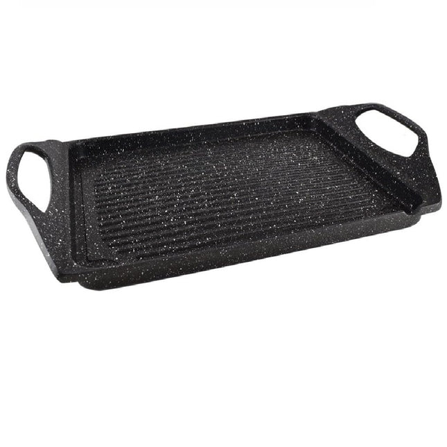 Bistecchiera in Alluminio Pressofuso 45 x 27 H 5.5 cm Doppio rivestimento Piano di Cottura 34 x 26 H 2.5 cm Rettangolare con 2 ManiciSenza PFOA e sicuro per l'uso quotidiano Antiaderente Adatta su Tutti i Piani di Cottura