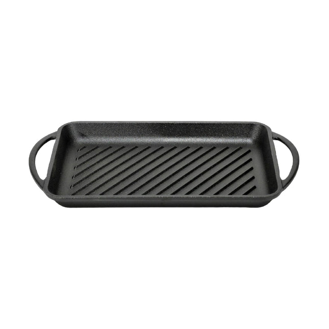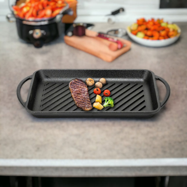 Bistecchiera in Ghisa 39.5 x 22 cm. Rettangolare con 2 Manici. Antiaderente Adatta su Tutti i Piani di Cottura.