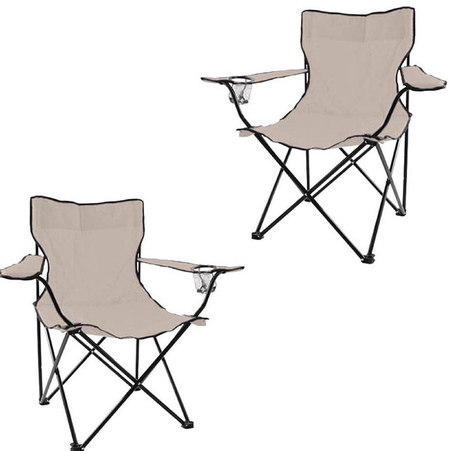 Kit 2pz Sedia da Campeggio Pieghevole Con Sacca Sedia PortatileContenitore Porta Bevande Porta Cellulare Colore Beige Struttura: Tubolari da 17 mm Silver. Chiusura a ombrello, super leggera e praticaDimensioni 80 x 57 H 90 cm