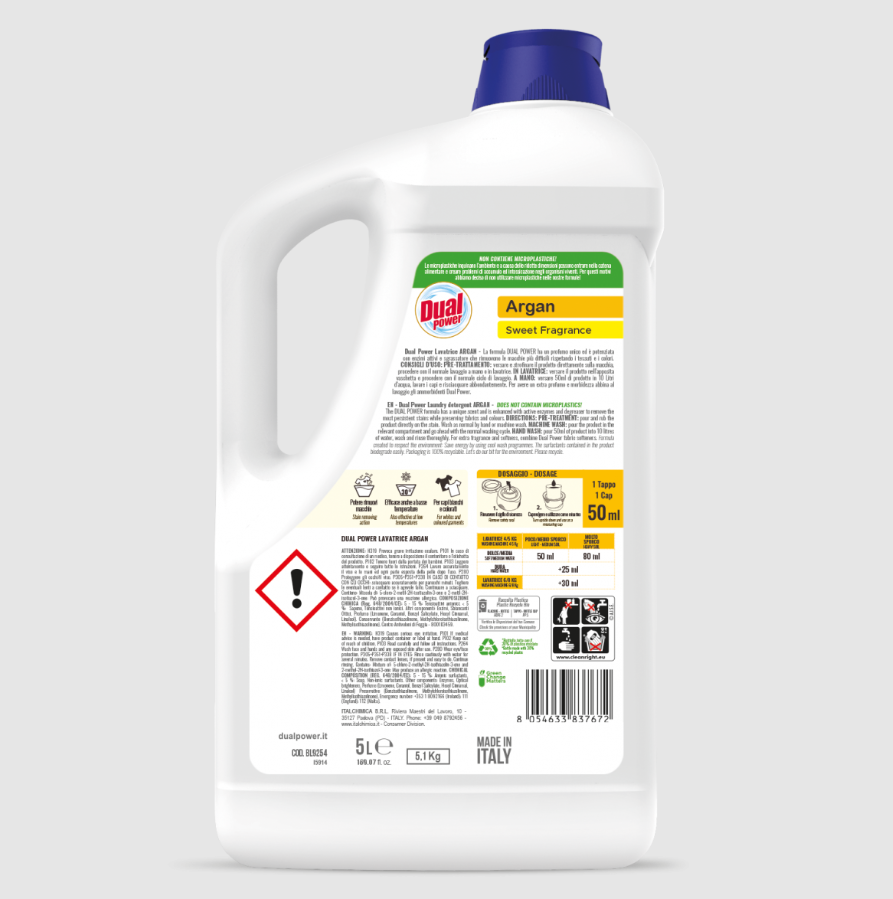 1 x Dual Power Detersivo Bucato Lavatrice Professional Perle D'argan 100 Lavaggi 5 Lt