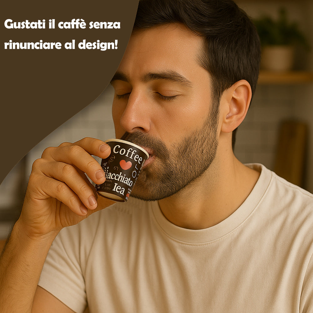 Il rivestimento interno anti-perdita evita gocciolamenti indesiderati, mentre il bordo rigido assicura una presa stabile. Ideali per espresso, macchiato e degustazioni, mantengono comfort e qualità ad ogni utilizzo.