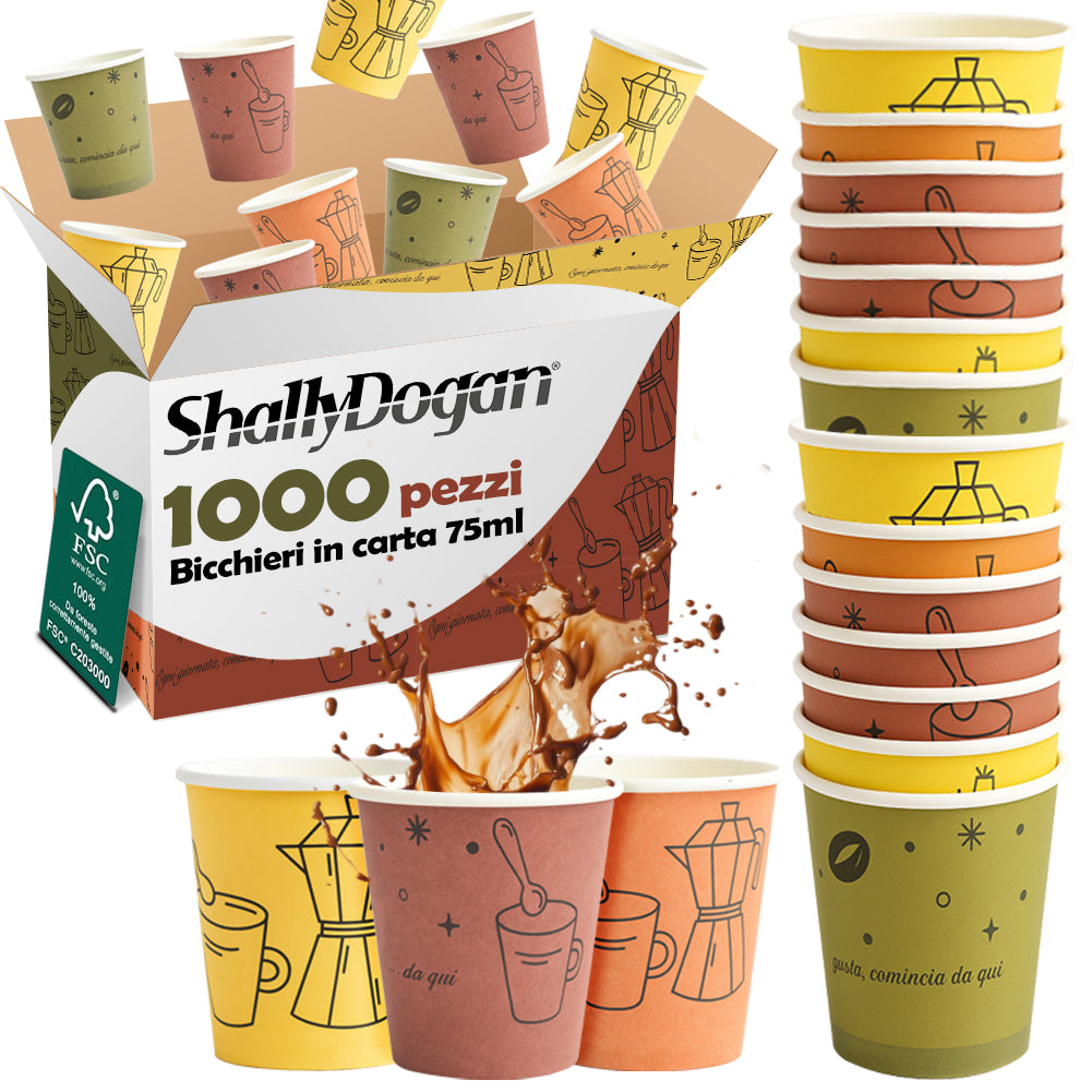 1 x 1000 Bicchierini da Caffè Monouso Decoro Moka Bicchieri 75ml Usa e Getta