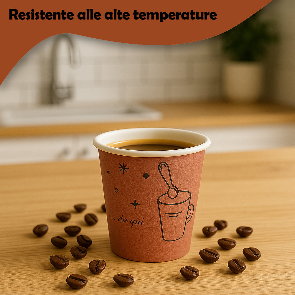 Realizzati in carta spessa certificata FSC, questi bicchierini assicurano ottima resistenza al calore e totale assenza di perdite grazie al rivestimento interno anti-goccia.
