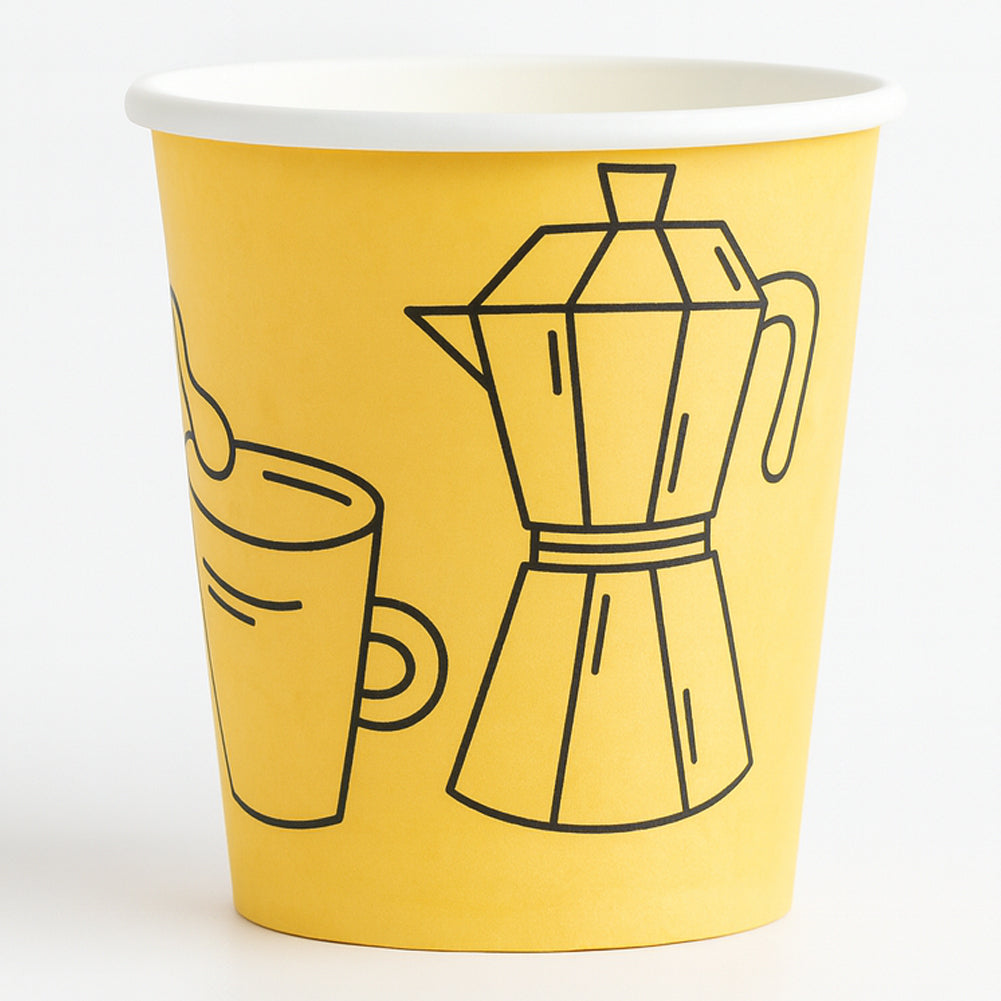 Le grafiche minimal ispirate alla moka e agli strumenti del caffè donano un tocco moderno e accattivante, perfetto per bar, uffici ed eventi che vogliono distinguersi con un’estetica fresca e originale.
