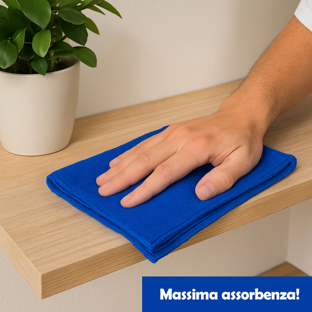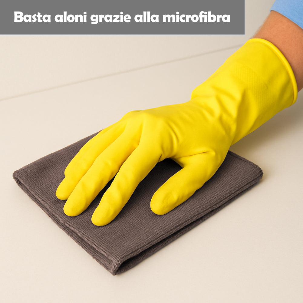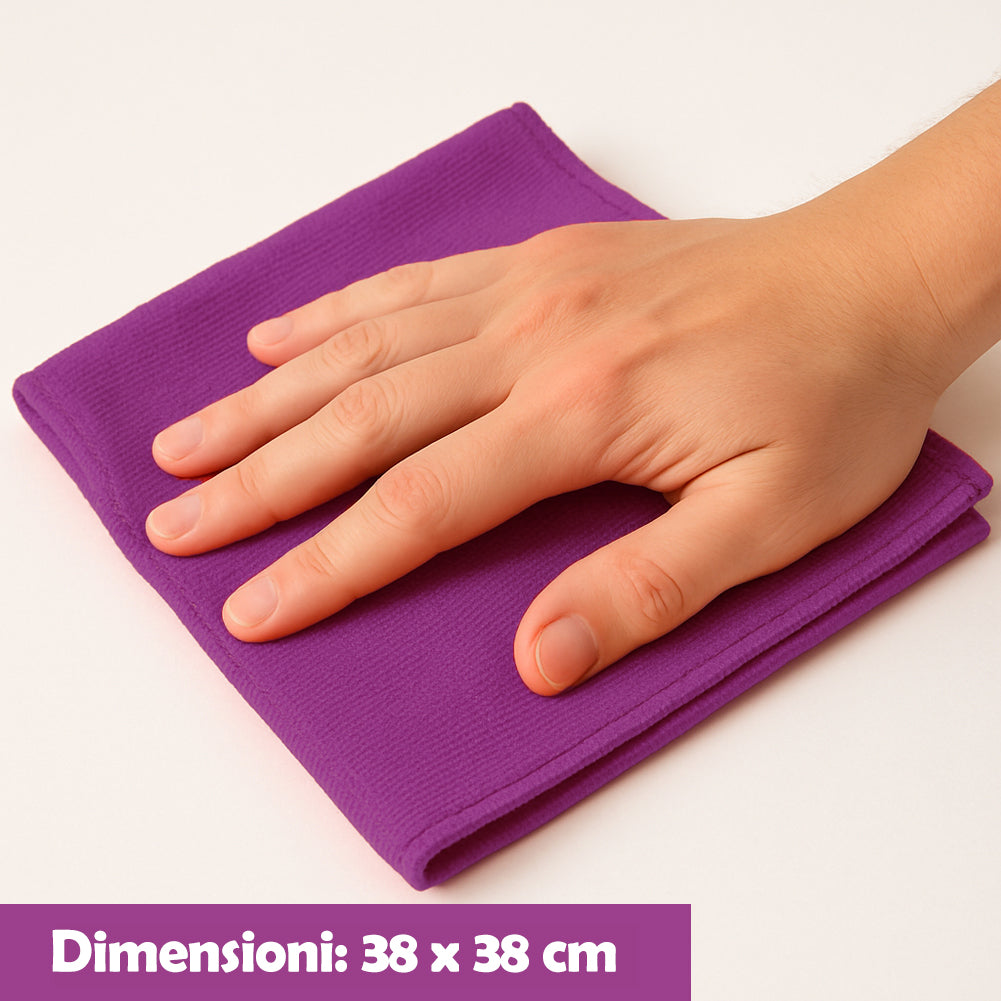 I panni in microfibra 38x38 cm assicurano una rimozione dello sporco superiore grazie alla trama ultra-assorbente che cattura polvere, grasso e impronte con una sola passata.