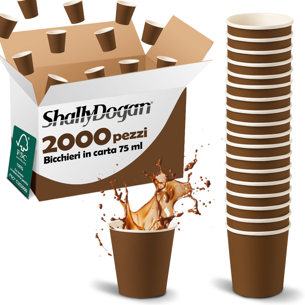 1 x 2000 Bicchierini da Caffè Monouso Decoro Marrone Bicchieri 75ml Usa e Getta