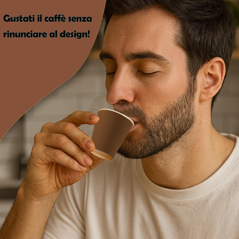 Il rivestimento interno anti-perdita evita gocciolamenti indesiderati, mentre il bordo rigido assicura una presa stabile. Ideali per espresso, macchiato e degustazioni, mantengono comfort e qualità ad ogni utilizzo.