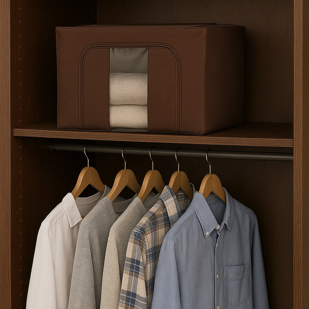 3 Scatole Pieghevoli per Armadio 40x30x20 con Struttura in Metallo e Tnt Resistente