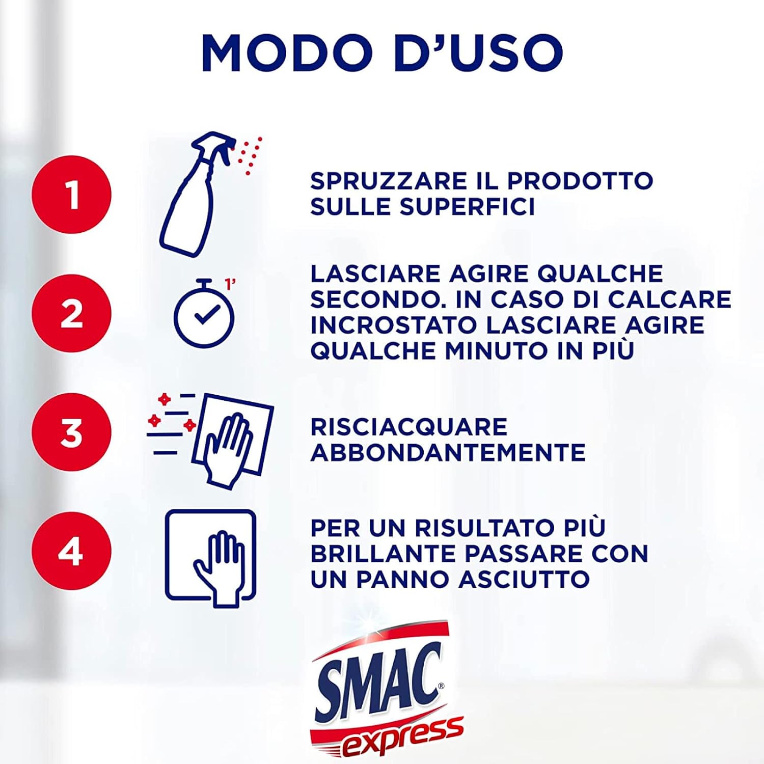 4 x Smac Express Scioglicalcare Igienizzante Anticalcare Bagno Profumato Spray