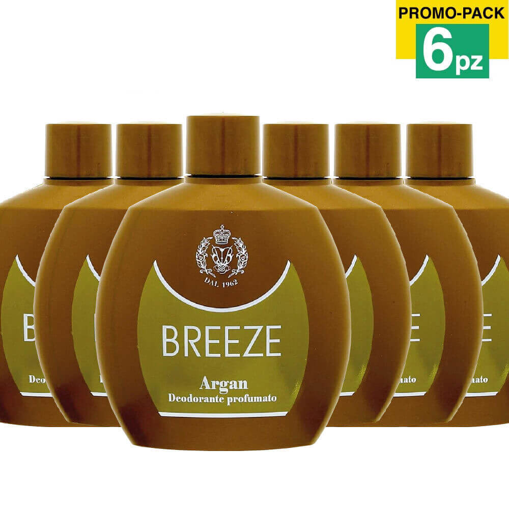 6 x Breeze Squeeze Deodorante Profumato Argan 100ml Corpo No Gas