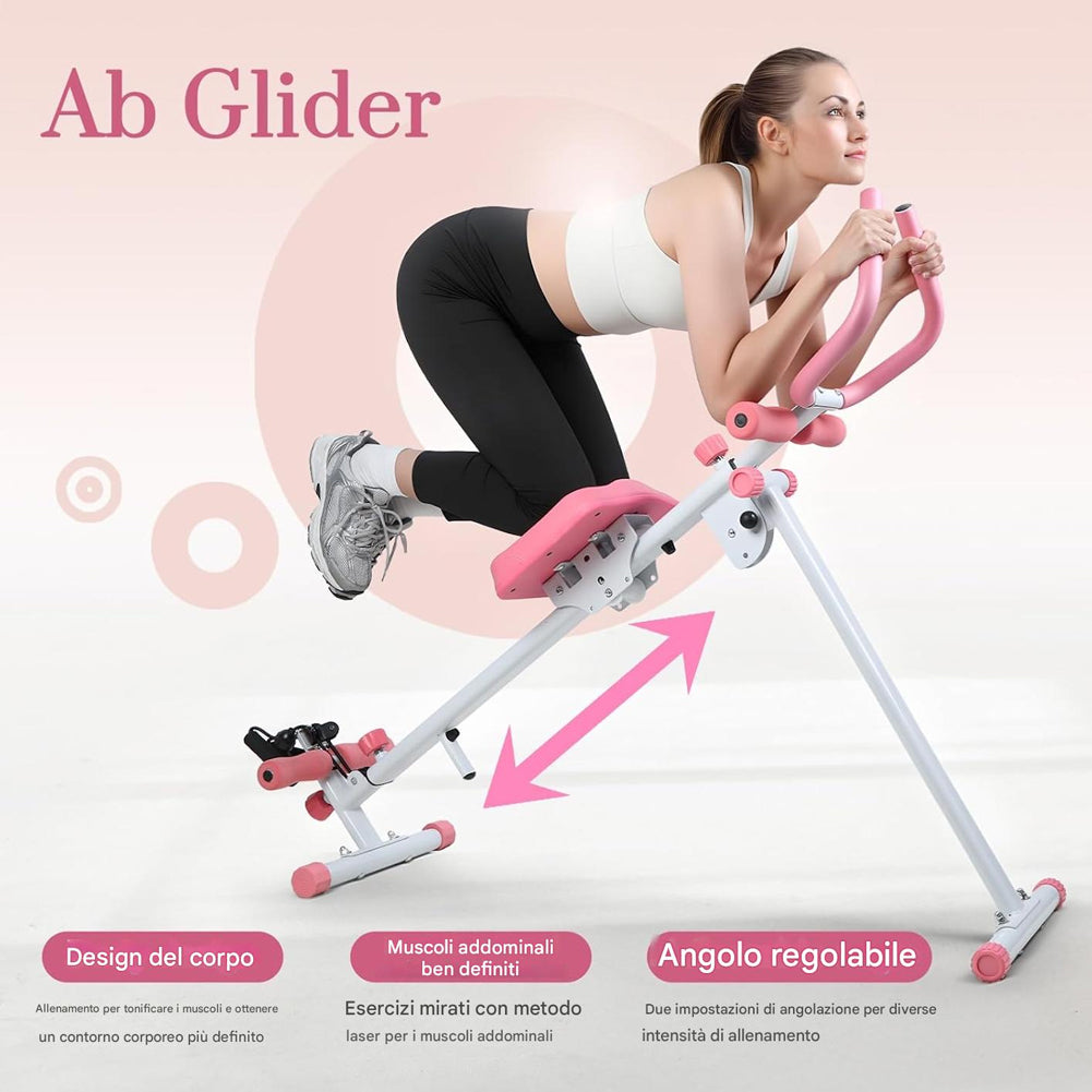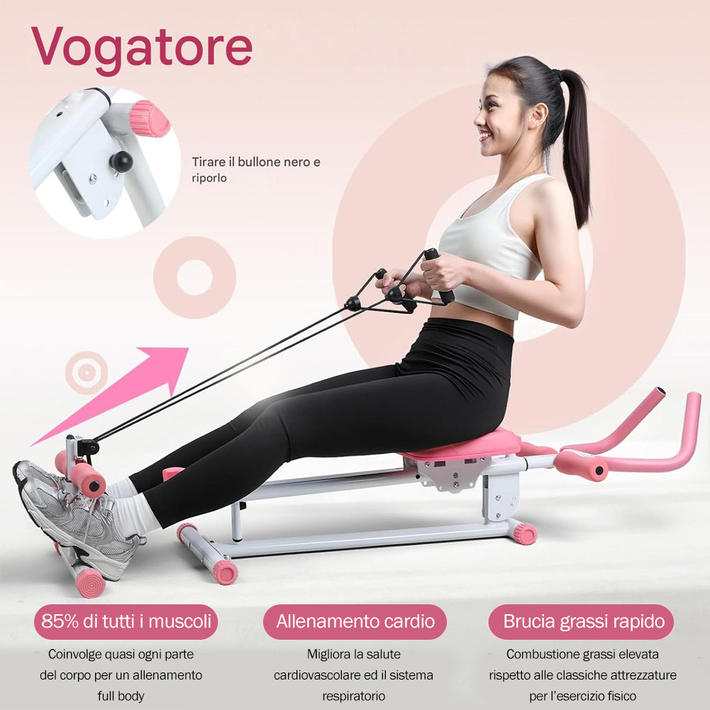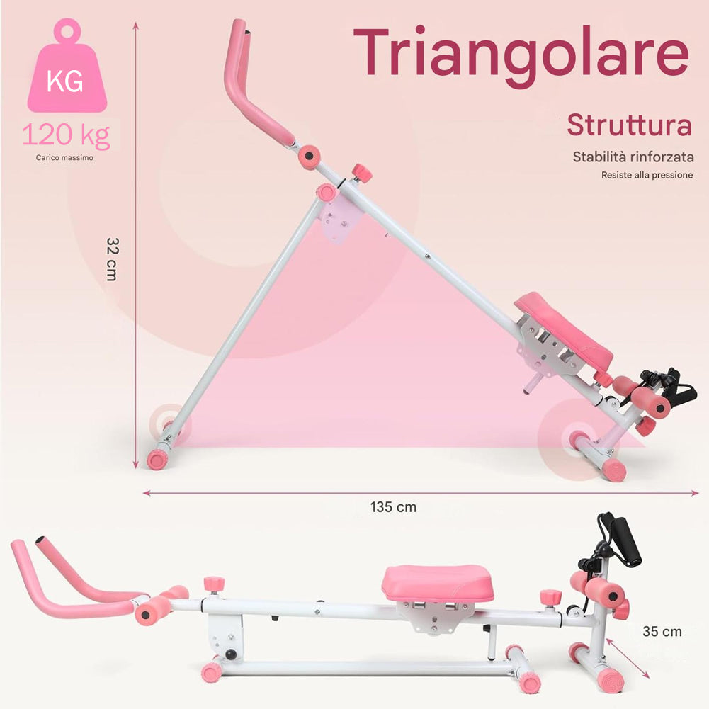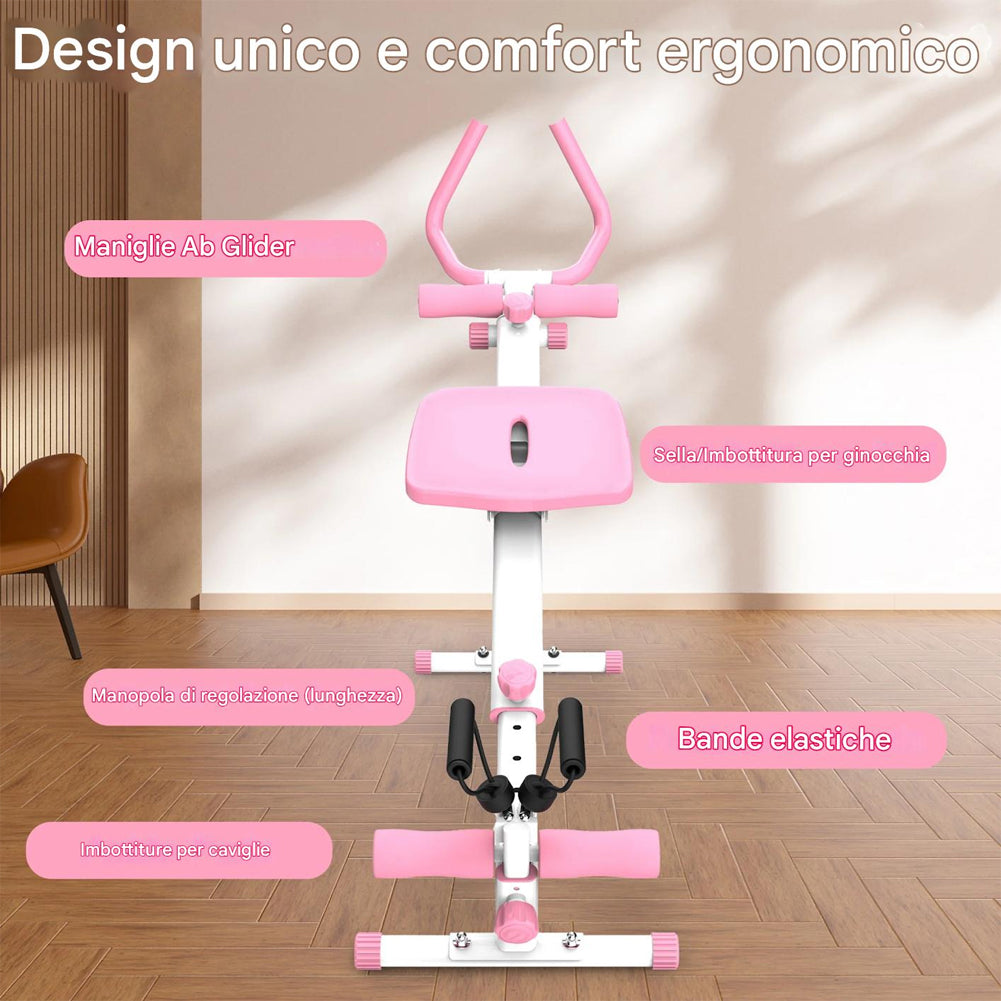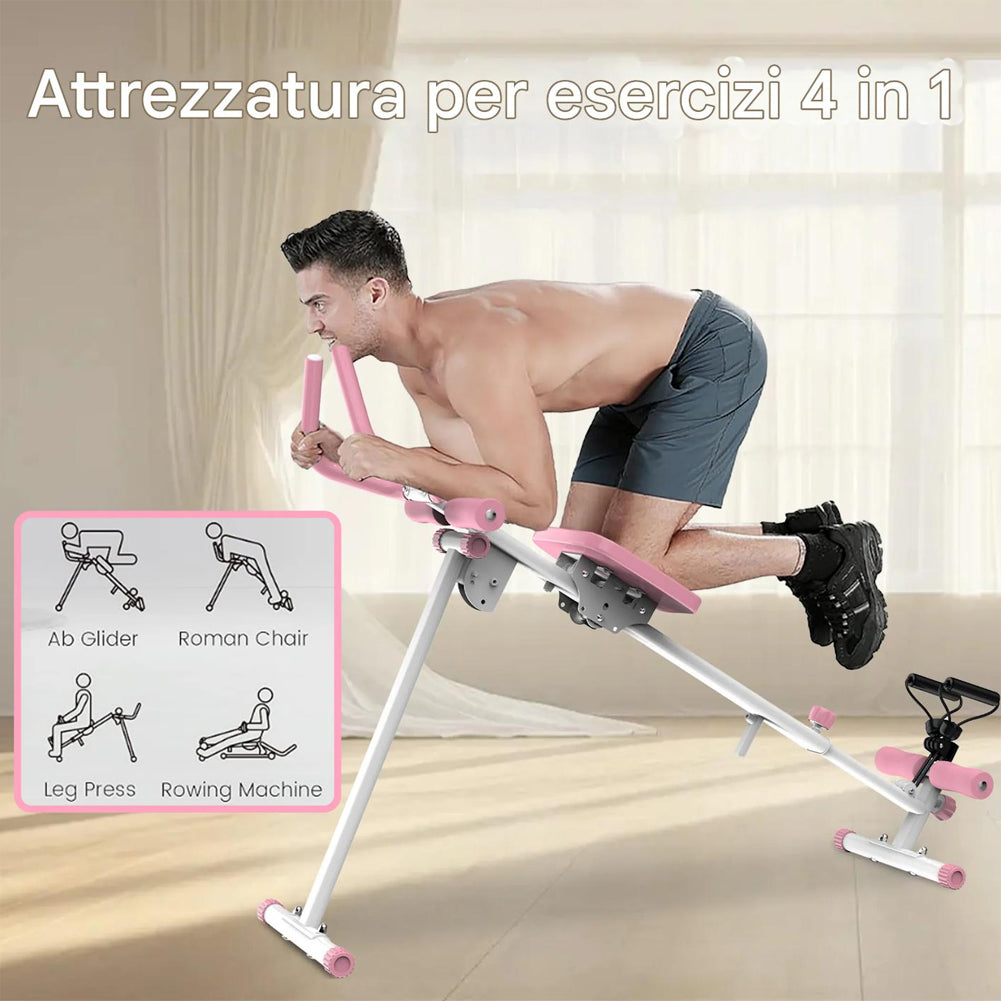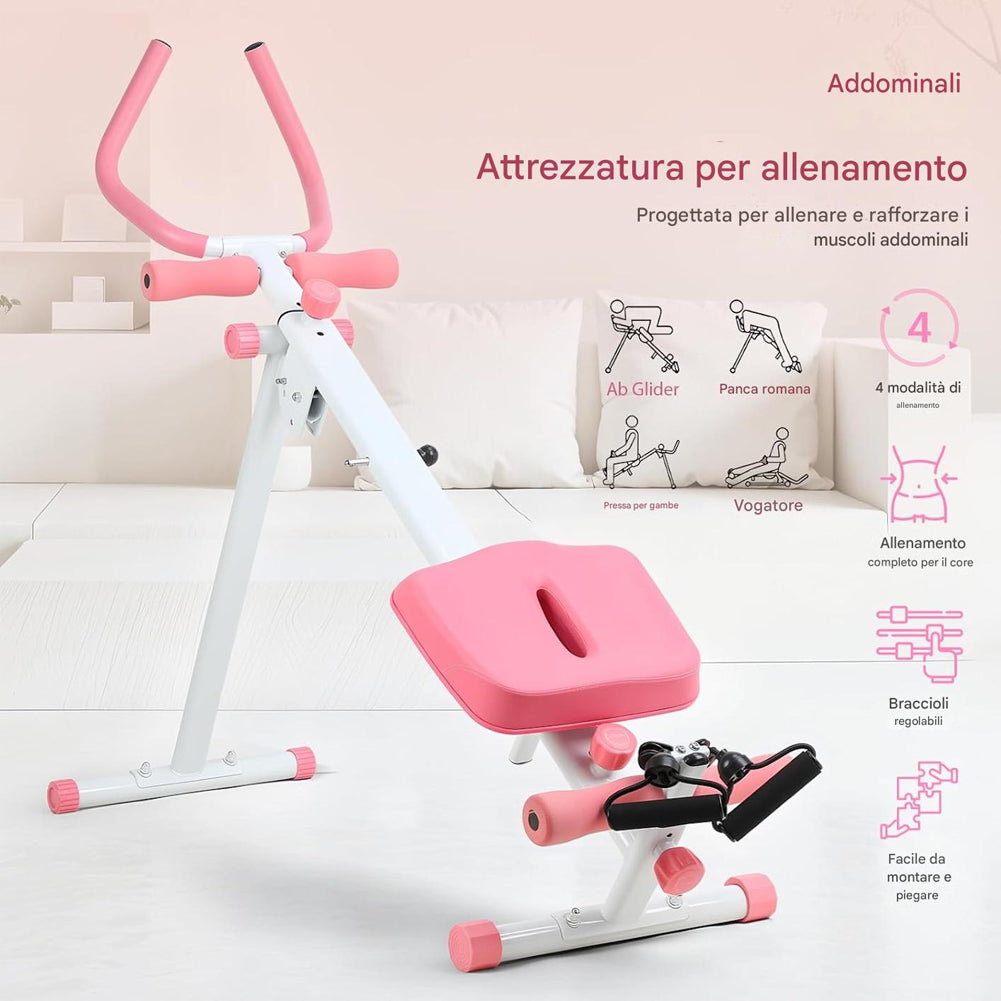1 x AB Machine Rosa Attrezzo Fitness per Addominali Multiuso Pieghevole Vogatore