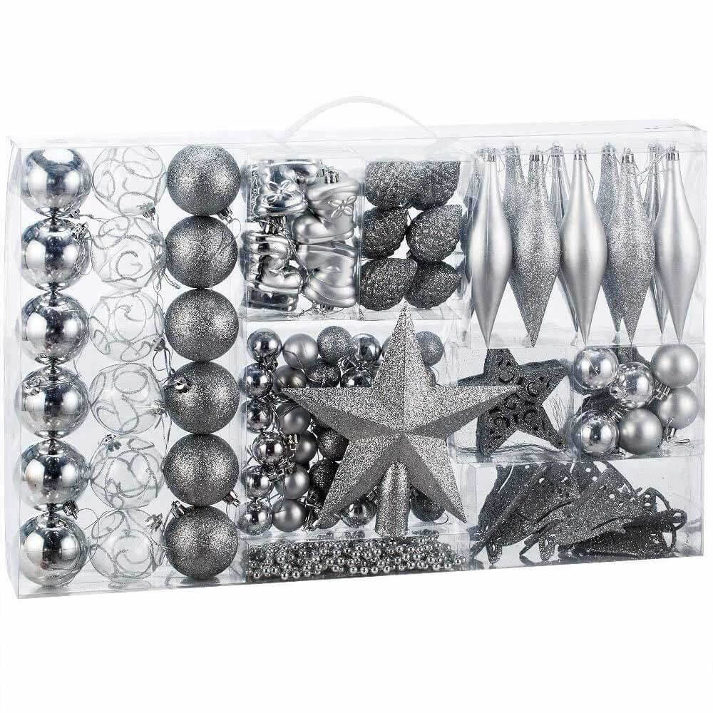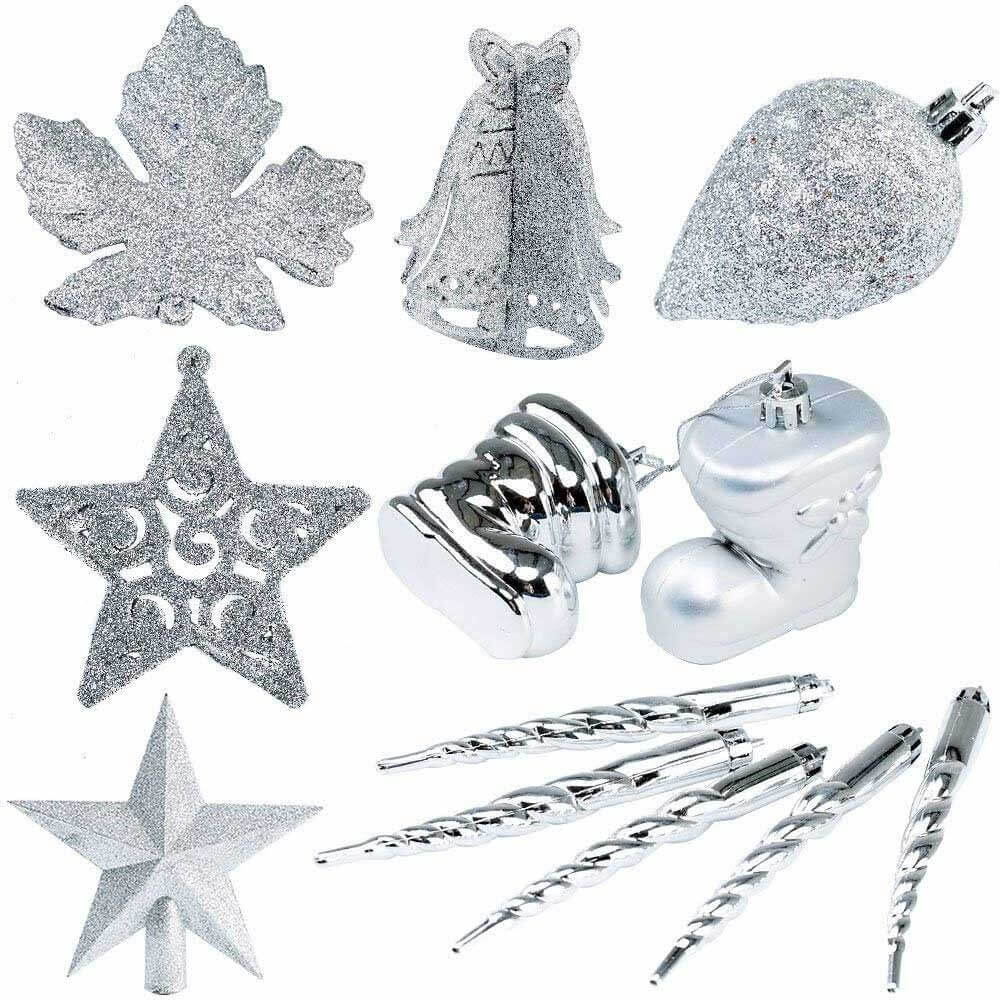 Addobbi Per Albero Di Natale 102 Pz Silver Palline Calze Stelle Pigne Natalizie