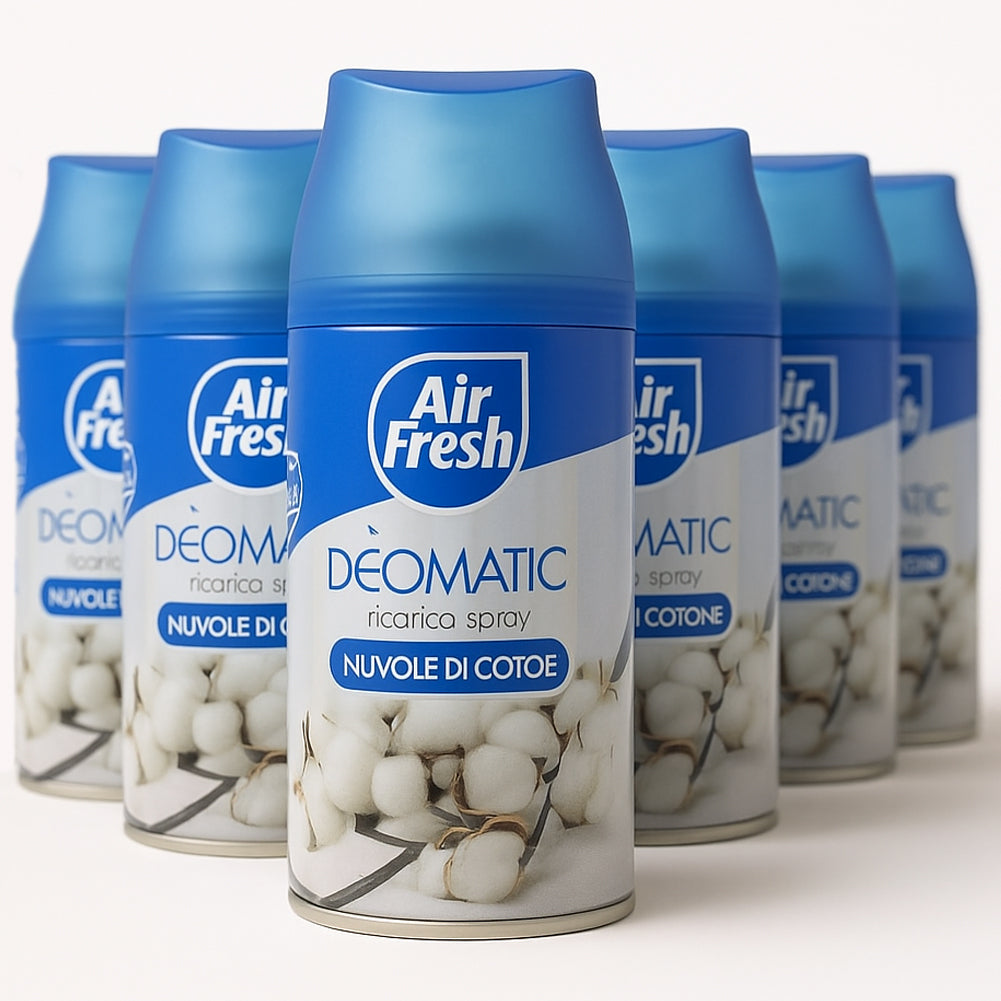 1 x AIR FRESH Deomatic Set 6 x 250 ml Ricarica Spray Profumatore per Ambiente Nuvola Cotone