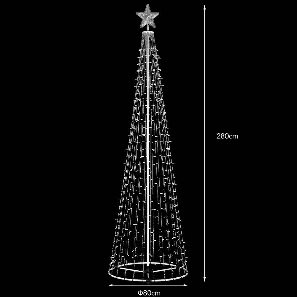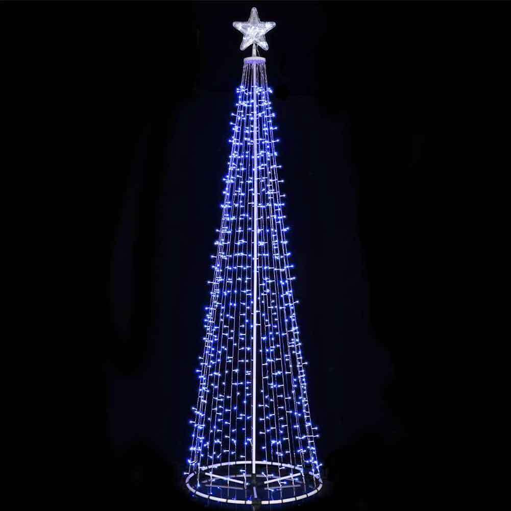 Questo fantastico albero di Natale è fornito di una solida struttura in metallo di altissima qualità con base rotonda da 80 cm verniciata a polvere, sulla cima possiamo trovare un stella come puntale da cui si diramano le catene luminose da agganciare alla base per dare forma a questo fantastico albero luminoso alto ben 280 cm e composto da ben 753 LED Blu che creeranno una magica e calda atmosfera natalizia.