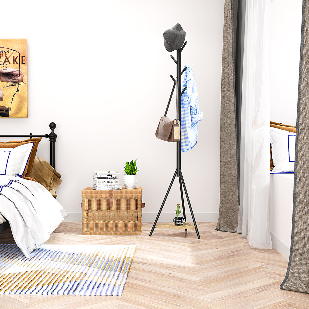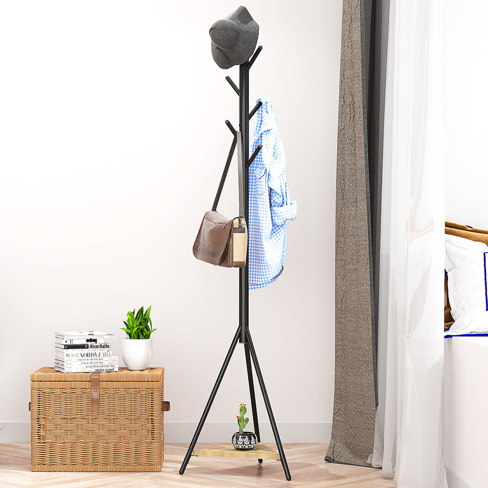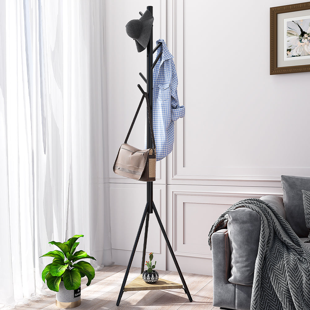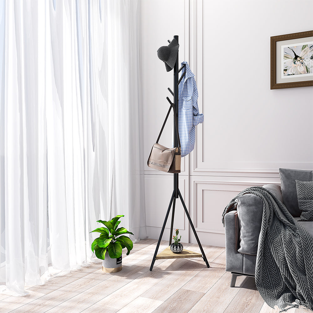 1 x Appendiabiti a Piantana Nero Attaccapanni da Terra Salvaspazio 6 Ganci 1 Ripiano