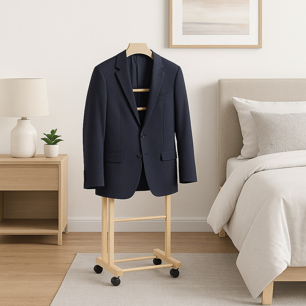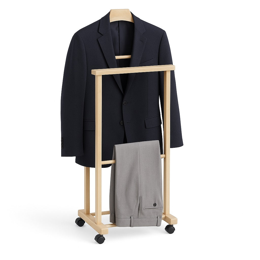 Appendiabiti Indossatore in Legno di Faggio colore Naturale Servo Muto con Ruote 43x33x105 cm