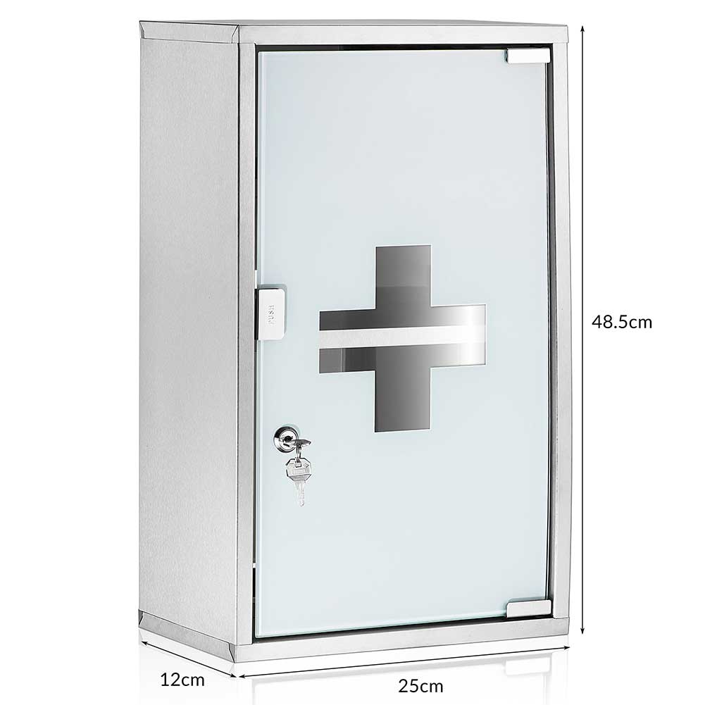 Armadietto Armadio Porta Medicinali Acciaio Inox Vetro Satinato 49 x25 x 12 cm