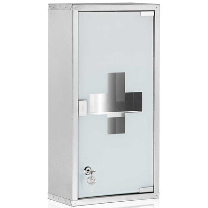 Armadietto Armadio Porta Medicinali Acciaio Inox Vetro Satinato 65,5x36x17 cm