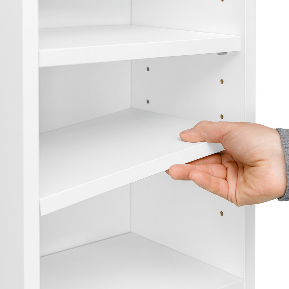 Dotato di 5 ripiani regolabili, 1 cassetto pratico e 2 ante, permette di organizzare asciugamani, prodotti per la cura personale o accessori domestici in modo ordinato e facilmente accessibile.