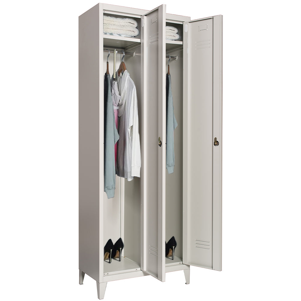 Armadio Guardaroba in Metallo a 2 Ante con Asta Appendiabiti e Ripiano Superiore