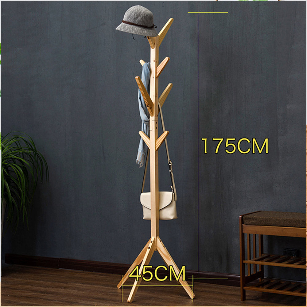 1 x Attaccapanni Appendiabiti a Piantana in legno di Pino 8 Ganci Naturale 58x58x175