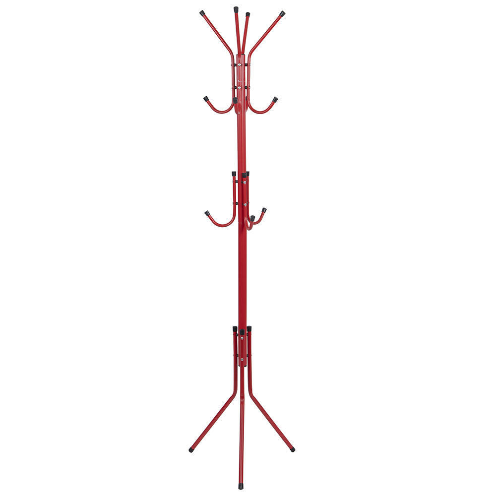 1 x Attaccapanni Appendiabiti a Piantana in Metallo 12 Ganci Colore Rosso 45x45x176
