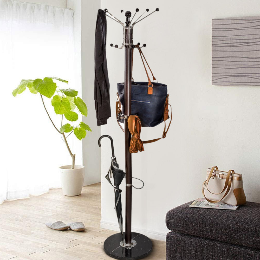 Attaccapanni Appendiabiti Piantana in Metallo 16 Ganci con Portaombrelli Marrone