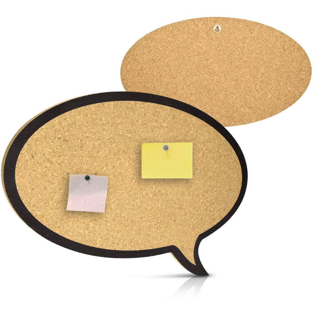 Bacheca in Sughero Forma Fumetto Tonda con Cornice Nera da Parete 44x29x1 cm