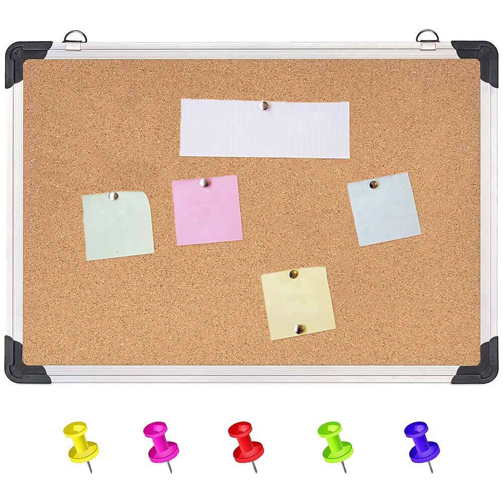 Bacheca in Sughero Quadrata con Cornice Alluminio da Parete 60x40x1.8 cm