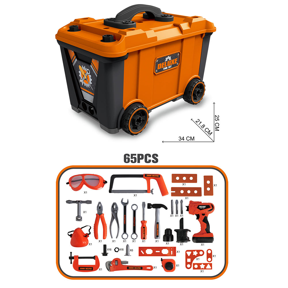 Set di attrezzi completo da 65 pezzi – Il kit di attrezzi include una vasta collezione di strumenti e accessori progettati per stimolare la creatività e sviluppare abilità STEM nei più piccoli.