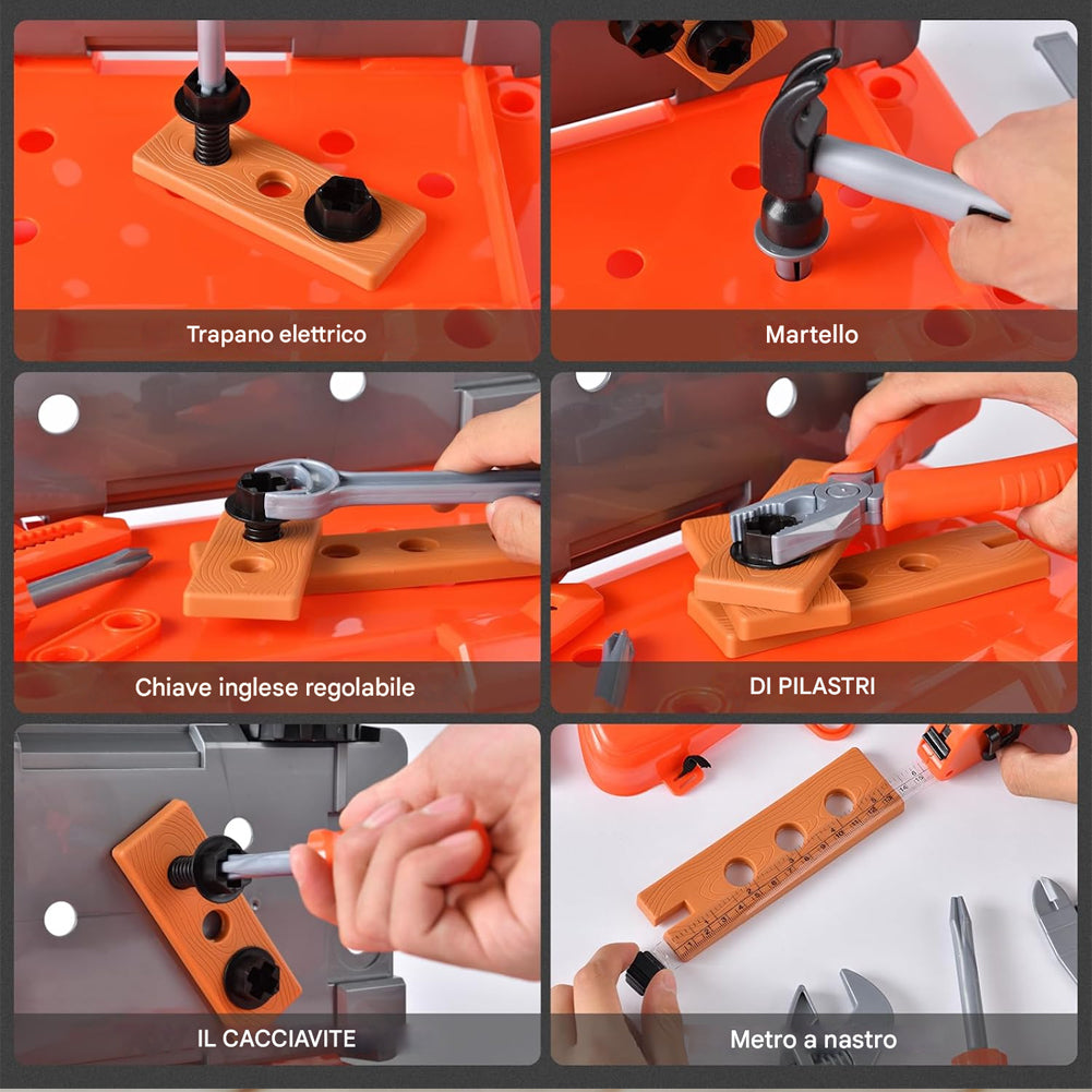 Con questo banco da lavoro i bambini imparano giocando, rafforzando creatività e concentrazione mentre si divertono a costruire e sperimentare.