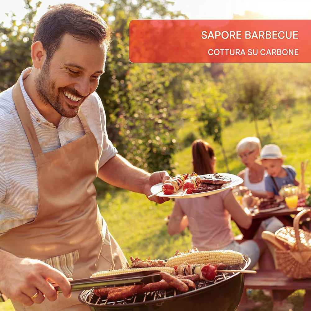 Compatto ma potente, questo barbecue a carbone da 43 cm di diametro è l'alleato ideale per cene in giardino, terrazze o campeggi.