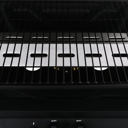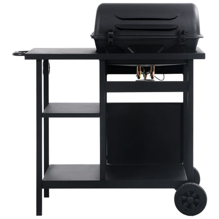 Barbecue e Griglia a Gas con Tavolino e 3 Ripiani in Acciaio Verniciato Nero