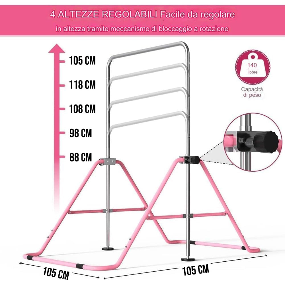 1 x Barra per Ginnastica e Danza per Bambini Pieghevole Sbarra Fitness in Metallo Rosa