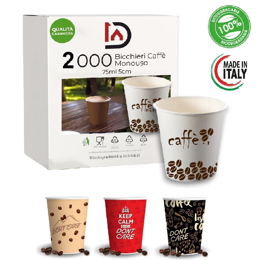 Bicchieri Caffe Carta 75ml Maxi Scorta 2000pz 100% Biodegradabili Made in Italy