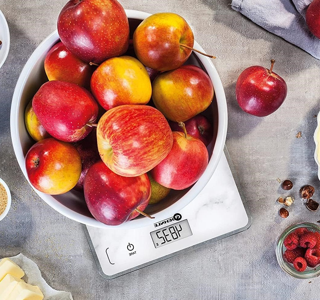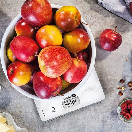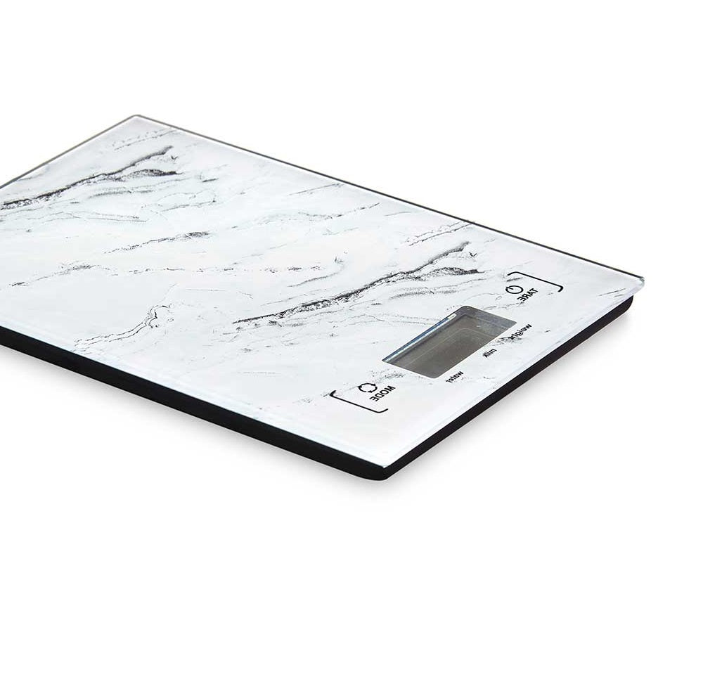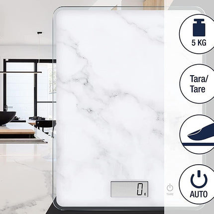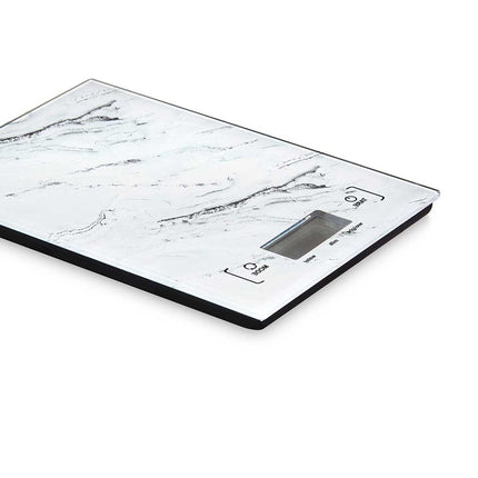Bilancia Cucina Digitale Ultra sottile Vetro Effetto Marmo 5KG 20x14cm Bianco