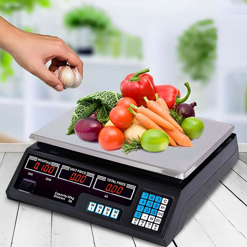 La bilancia commerciale digitale è veloce e facile da usare. Basta inserire il prezzo del prodotto per unità di misura e la bilancia calcolerà il prezzo di vendita.