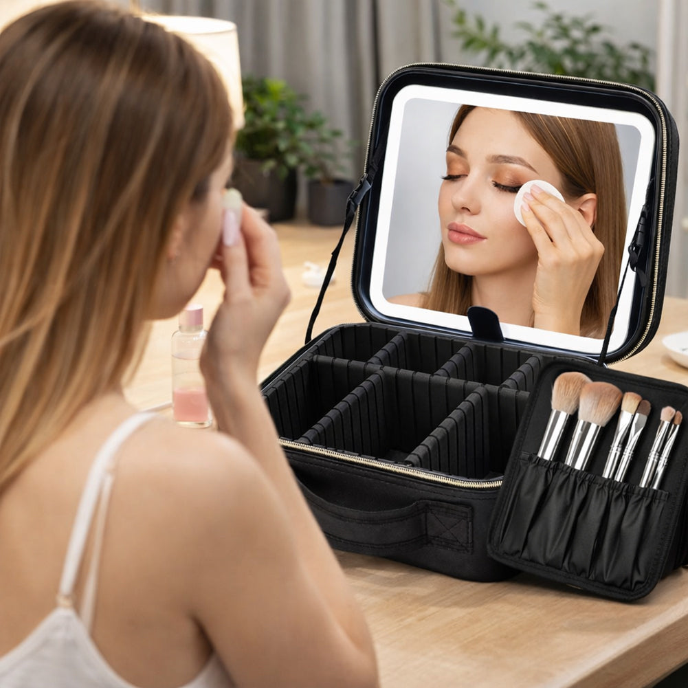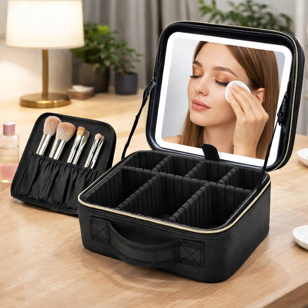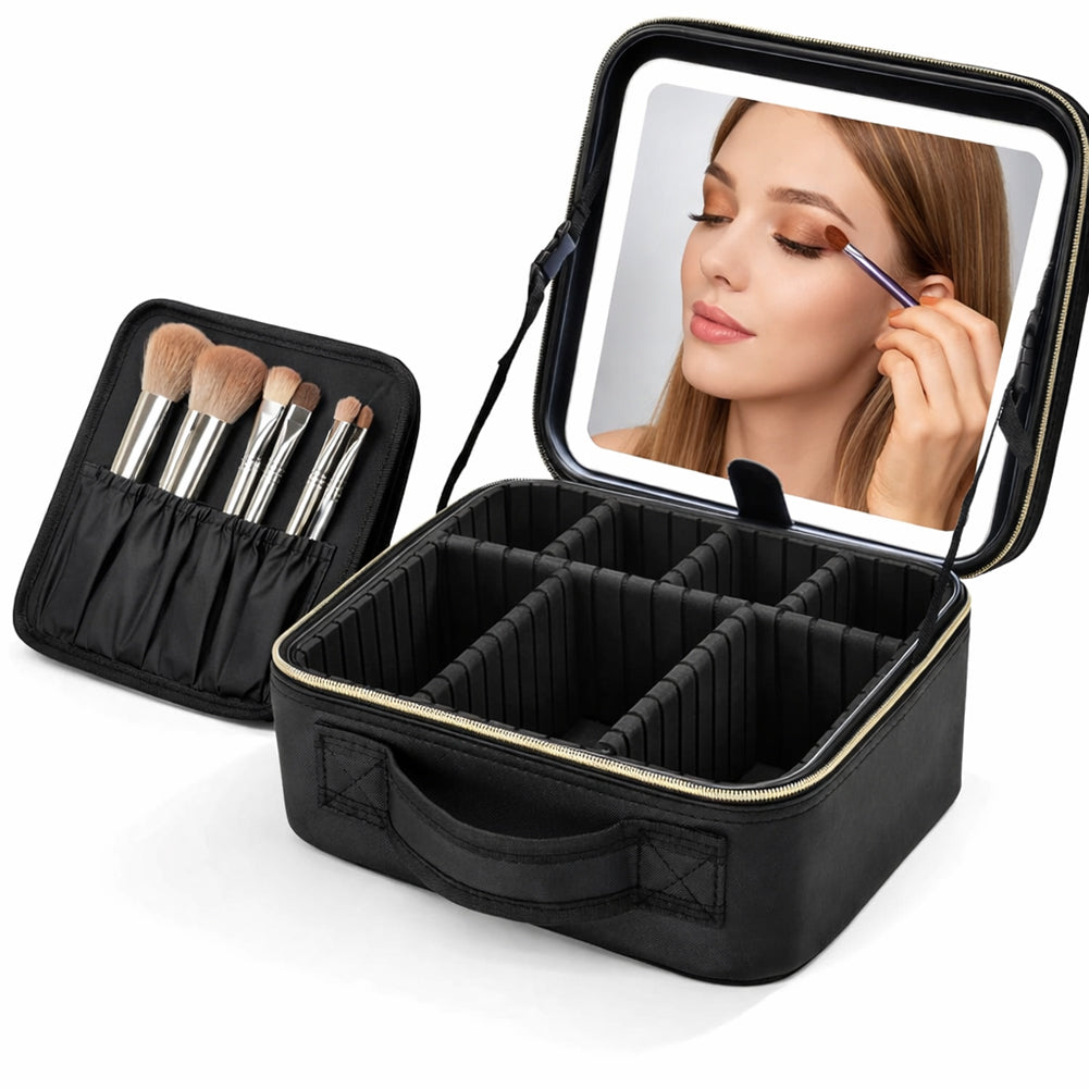 1 x Borsa Nera Porta Trucchi con Led Specchio ed Illuminazione Organizer Scomparti