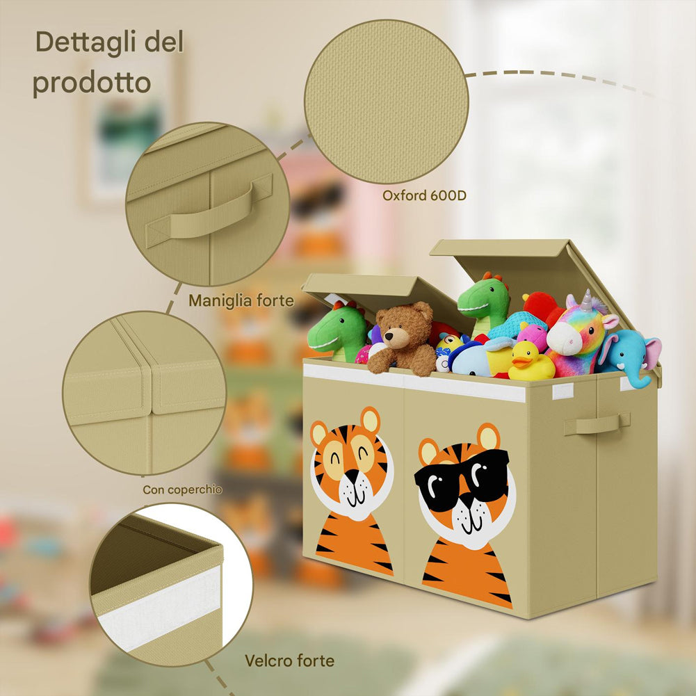 1 x Box Contenitore Giocattoli con Animali Doppio Pieghevole 80L Beige Salvaspazio