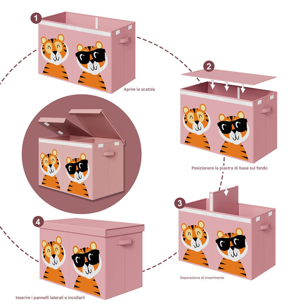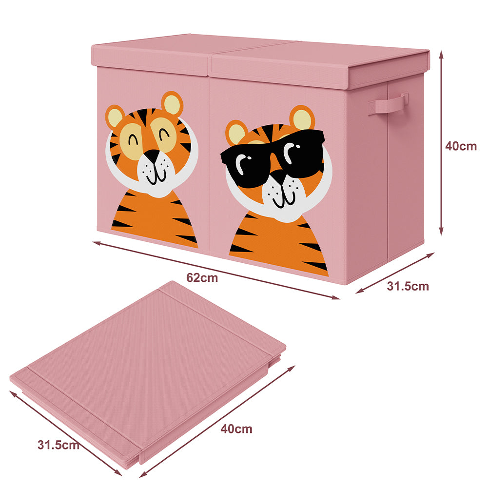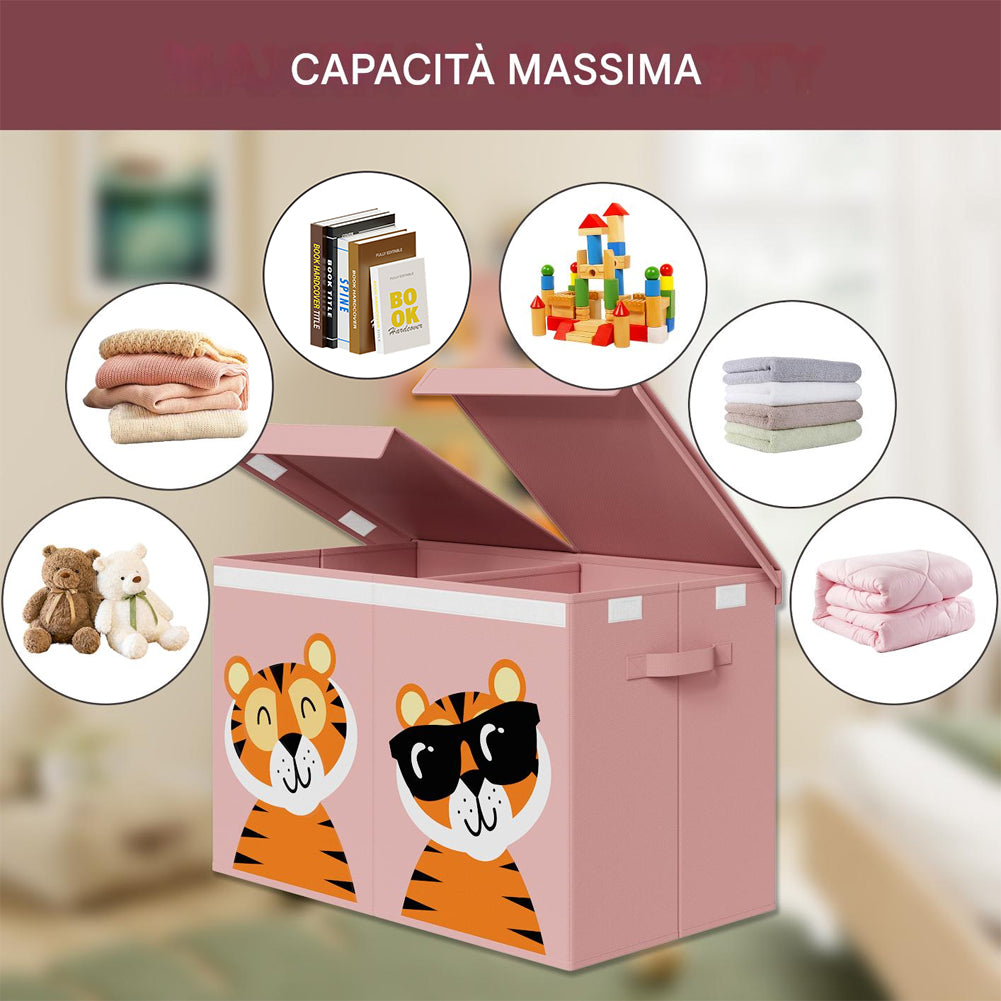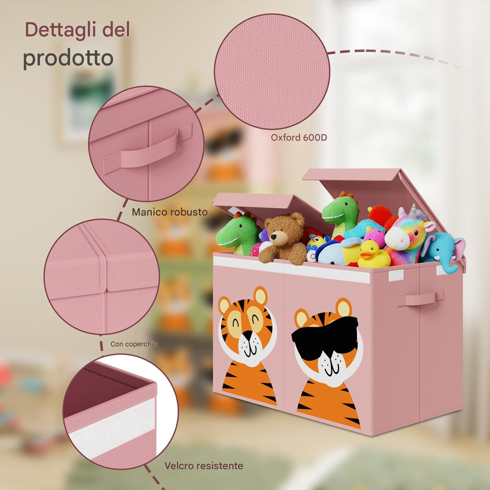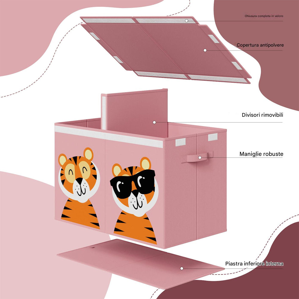 1 x Box Contenitore Giocattoli con Animali Doppio Pieghevole 80L Rosa Salvaspazio