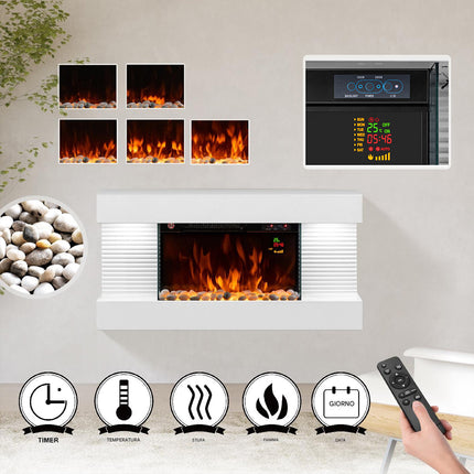 1 x Camino Elettrico Saint Moritz da Parete con Fiamma Realistica Caminetto a Muro 2000 W