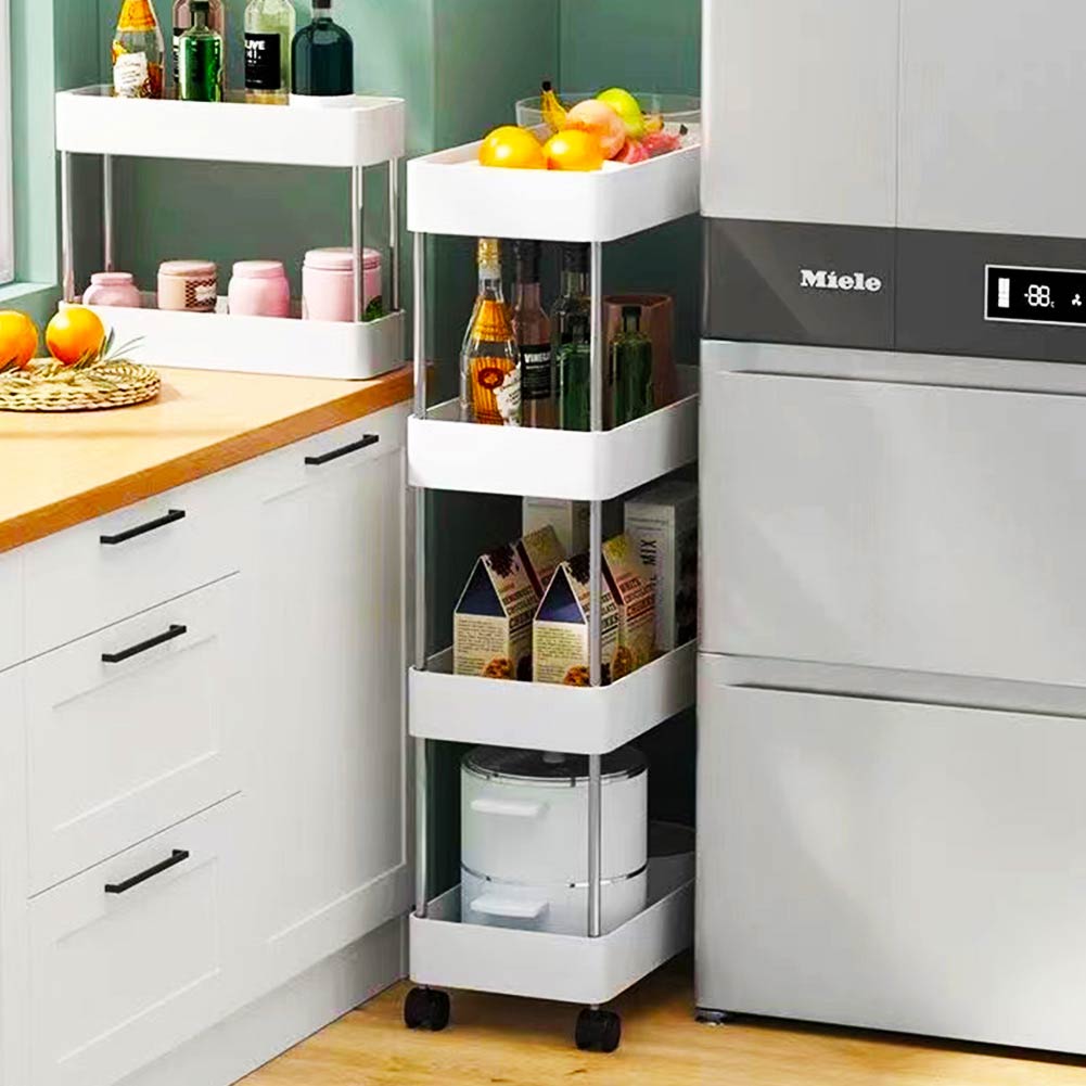 Carrello Carrellino Multiuso Mobile Spazi Stretti Portaoggetti 4 Ripiani Bianco
